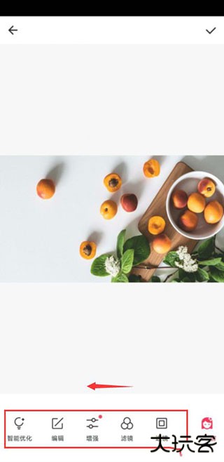 2、从相册导入一张照片后,向右滑动下方菜单。