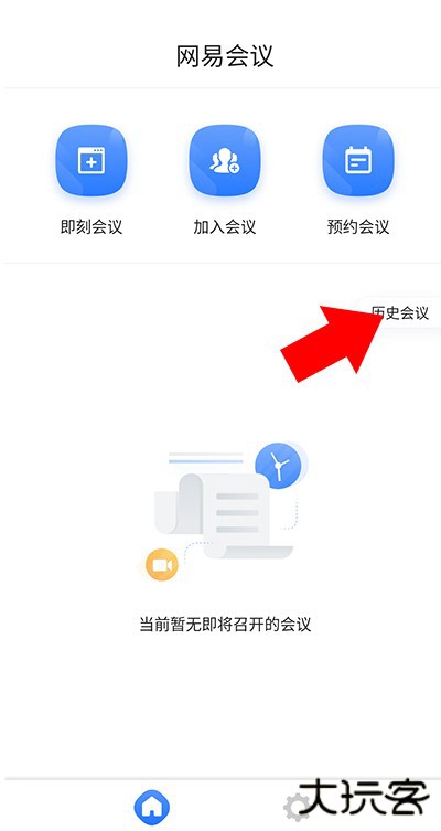1、登录网易会议后来到程序首页,点击右侧的历史会议