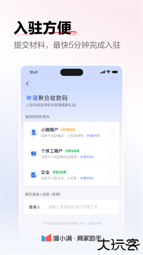 1、零成本使用:免费注册,无年费,降低小微商户经营成本。