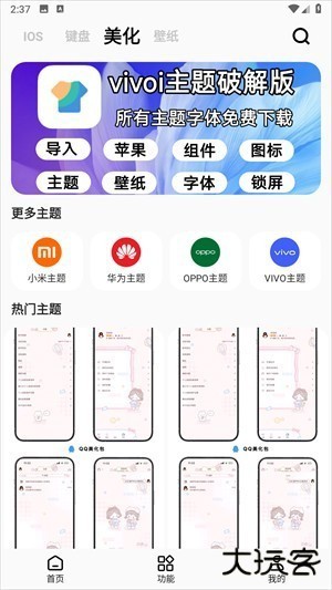 1、提供丰富的主题资源,包括壁纸、图标、字体等。