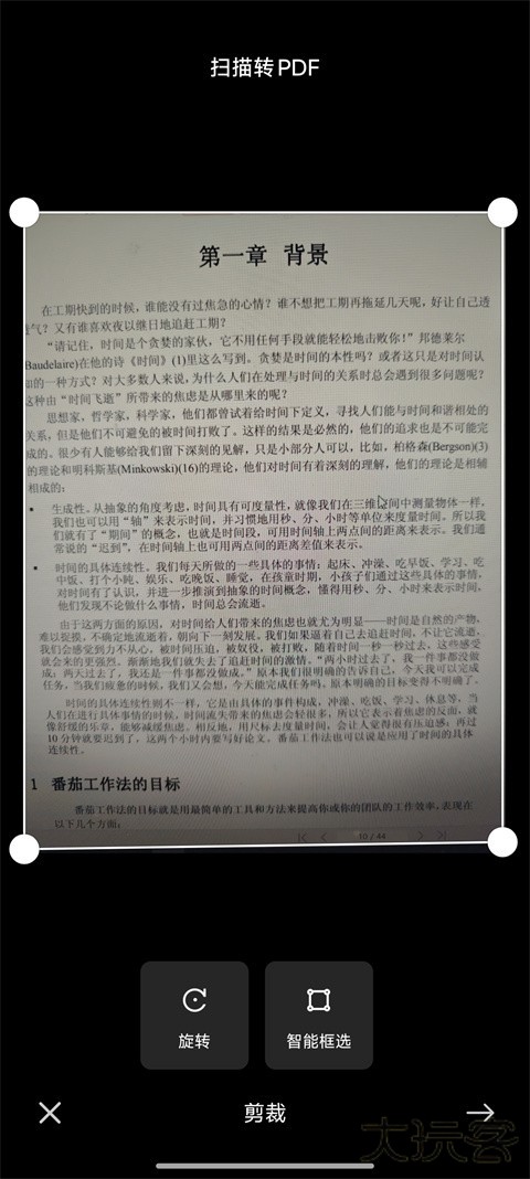 2、点击“扫描转PDF”,对准文件拍摄,支持智能框选或手动调整识别区域。