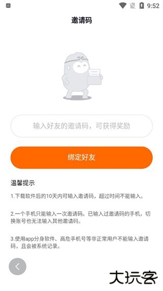 3、输入邀请码,绑定好友后就能获得金币奖励。