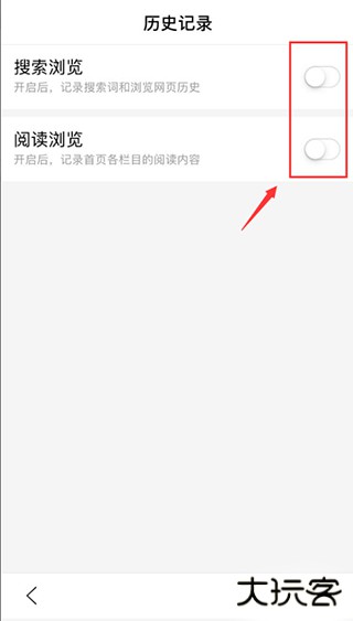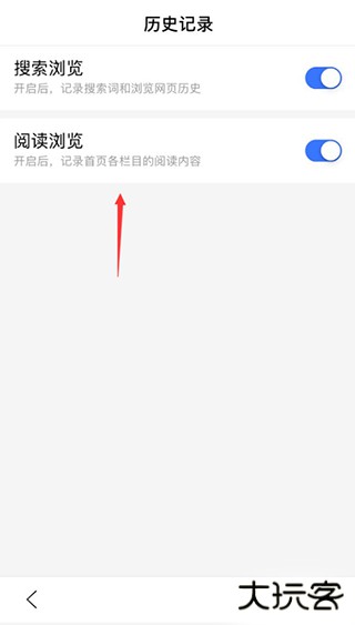 2、进入到历史记录页面里之后,可以看到有 搜素浏览和阅读浏览;