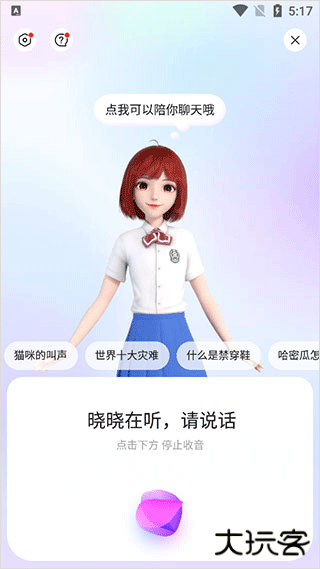 5、底部中心的语音可以唤醒语音助手晓晓,可以说话聊天还可以语音搜索哦。