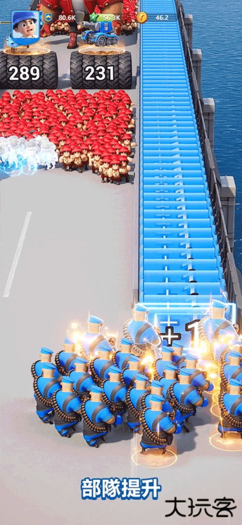 4、正式开始后左右滑动屏幕可以控制英雄移动,击碎不同的物品可以获得不同的小兵。