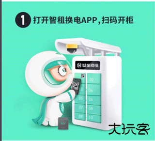 1、用户在智租换电柜前,可以打开软件扫码开柜。