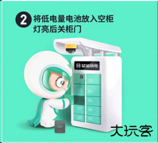 2、然后将低电量电池放入空柜,等灯亮后关柜门。