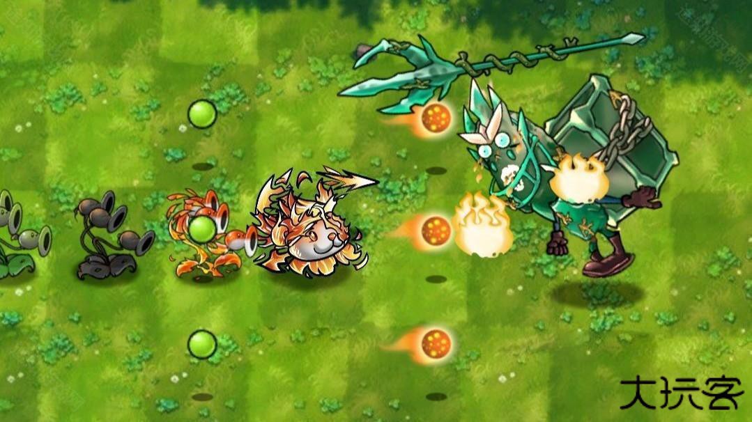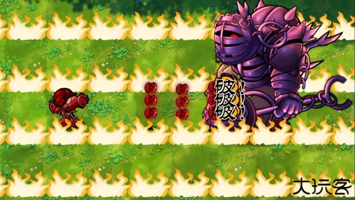 特点:出场、死亡时附带全屏火焰。自身免疫樱桃爆炸。每次可以向前方三行各射出四枚子弹,子弹对击中的僵尸附加红温效果,子弹可以过究极窝炬,伤害翻倍。3%的概率在本行生成火焰,造成1800伤害并使该行僵尸红温。