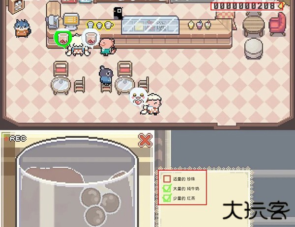 1、精确调配饮品:处理顾客订单是核心环节。依据顾客提出的具体需求(如特定糖度、冰量、小料组合等),精准控制各类原料的添加量。成功完成每一份订单即可获得金币收益。