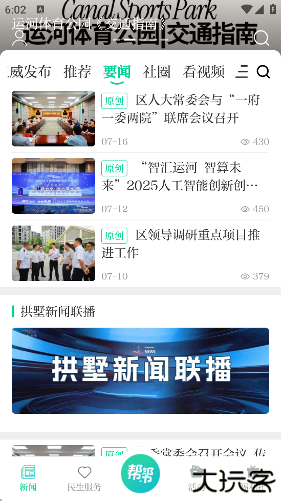 1、本地化内容聚焦:强调“身边资讯”,一手掌握拱墅区大小事件,并融入运河文化元素(如拱宸桥专题) 。