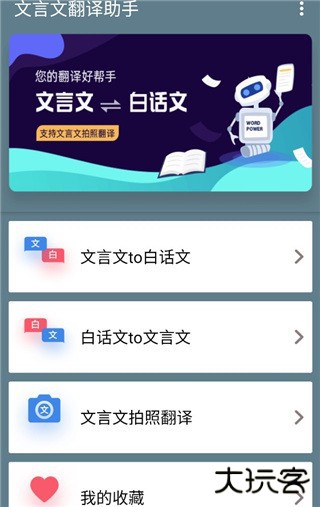 1、用户妖妖舞下载文言文翻译转换器之后就可以直接进入,然后选择我们需要的翻译功能。