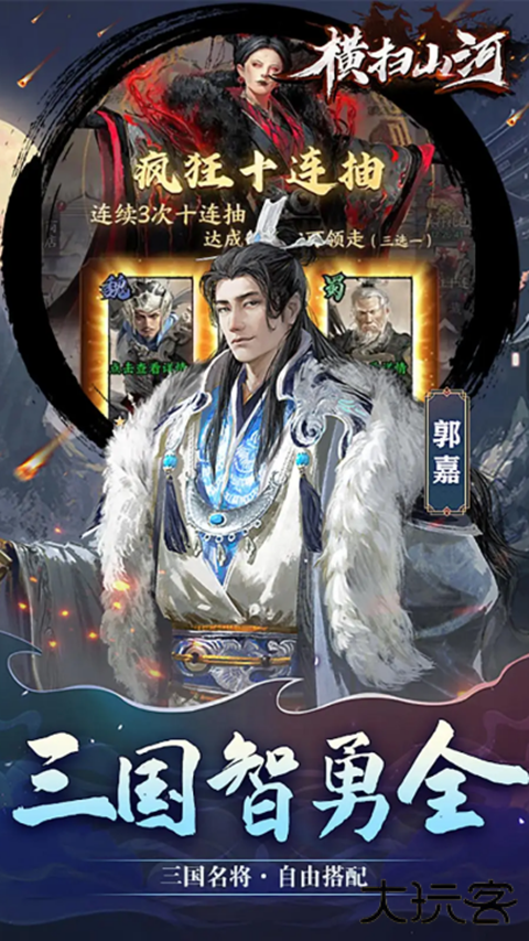 4.随机抽卡,组建强队:通过随机抽卡招募武将,组建强大的战斗队伍,横扫一切敌人;