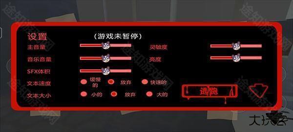 9、万一被邦尼发现了,就赶紧跑回这个囚笼里,就可以躲避一整子,在菜单内还可以设置更改场景亮度和音量等。