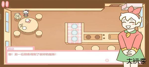 6、完成后,回到餐厅,将桌子上制作好的点心滑动到顾客面前,邦尼就会自动前往送餐,继续完成接下来的订单,招待顾客。