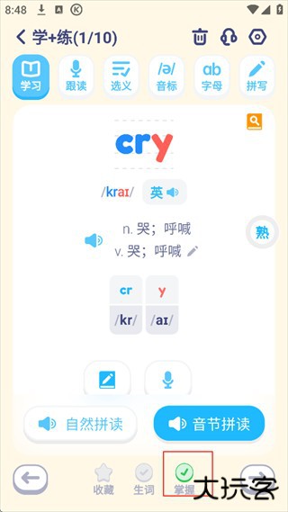 5、随后就可以开始背了,感觉掌握了这个单词就可以点击下方的掌握,进行下一个单词