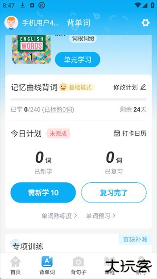 4、当你感觉自己学的很OK,回到首页点击背单词