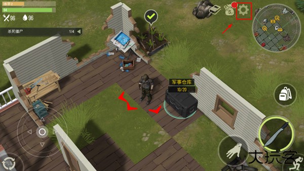 4、基础生存操作: 在开放地图中收集生存物资(木材 / 食物 / 医疗用品),拾取散落的武器及防具(刀具 / 枪支 / 护甲)。