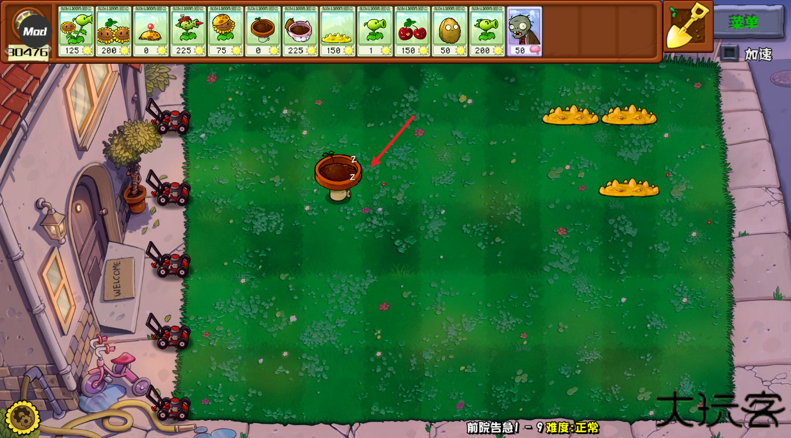 2.然后收集阳光布置自己的阵容。