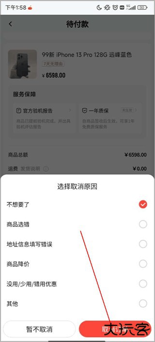 4、随便选择一个理由,点击取消即可。
