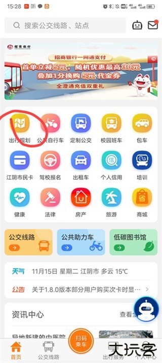 1.下载并安装全澄通app官方版,完成后打开软件,点击出行规划选项