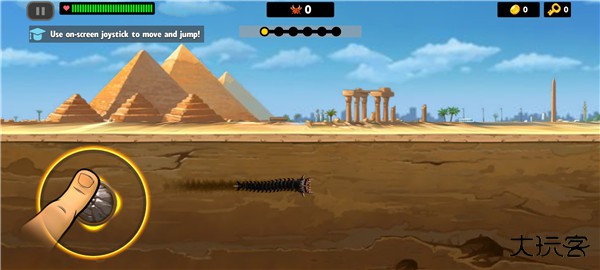 死亡蠕虫游戏还是非常经典的,在沙漠等多种场景里,很多的蠕虫出现了,我们需要不断吞噬地面,天空的目标来获得得分和成长。这里还有奇特的道具可以拾取,让你加快,无敌等等。注意你的蠕虫受到了伤害,就会扣血,如果扣完就会失败。