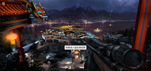 2、以狙击手身份开始游戏,点击屏幕中央进入瞄准镜观察模式。