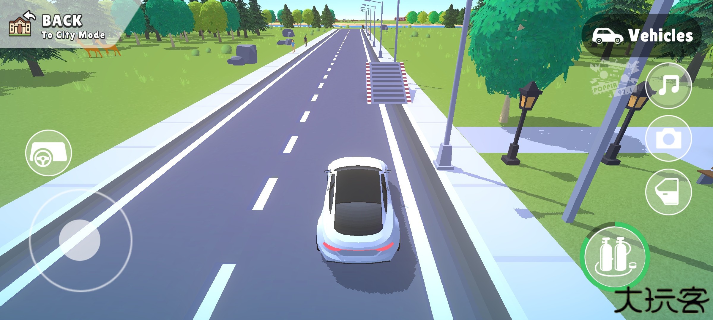 12、车辆驾驶操作需使用分列屏幕两侧的方向控制键,实现移动与转向控制。
