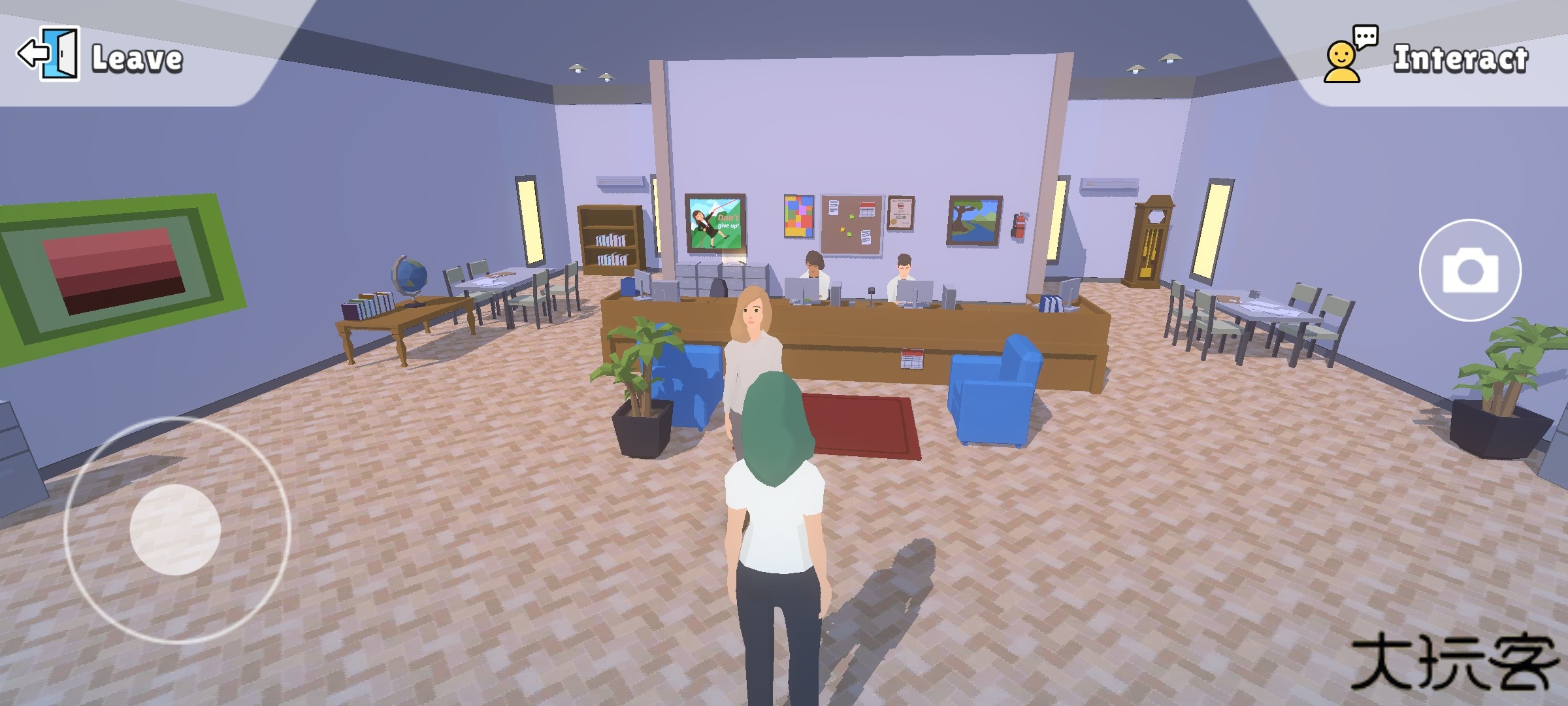11、自由漫游状态下,滑动屏幕左半区控制角色位移,点击右侧相机图标激活截图功能。