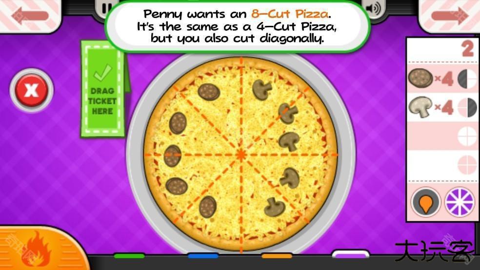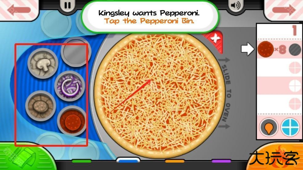 1、下图为玩家展示了接收客户订单的地方,你需要查看客户点了什么类型的披萨。