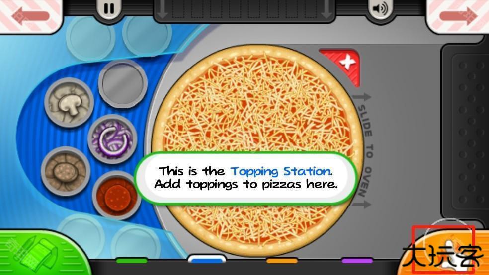 5、玩家可以点击角落的按钮,在不同的工作站之间切换,以完成披萨制作的各个步骤。