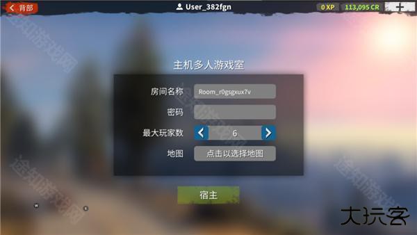 2、选择模式时我们点击多人模式进入,之后在下方点击宿主进行创建房间,设置密码;