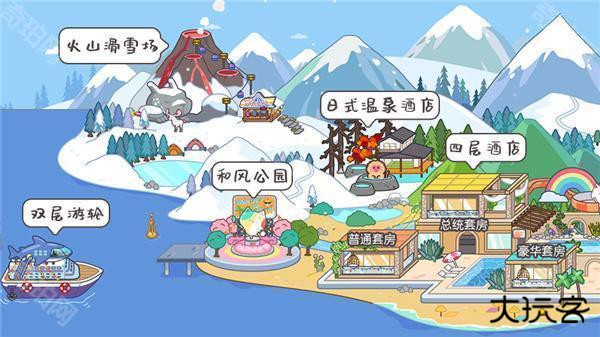 7、火山滑雪场、日式温泉酒店、四层酒店、双层游轮、和风公园;