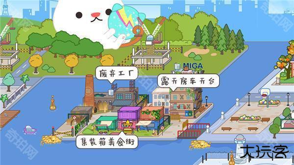 1、小镇地图从左到右分别对应的是:废弃工厂、露天房车天台、集装箱美食街;