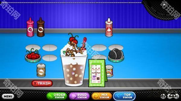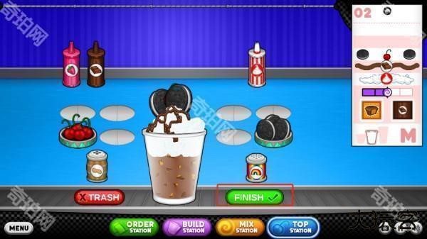 6、将顾客要求记下,点击build station,mix station,top station开始制作冰淇淋