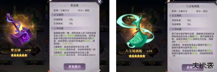 初期阶段推荐装备紫雷锤。待后期解锁天道之力后,建议更换为八宝琉璃瓶,它兼具治疗与吸血效果。确保角色的生存能力是队伍持续输出的根本保障。