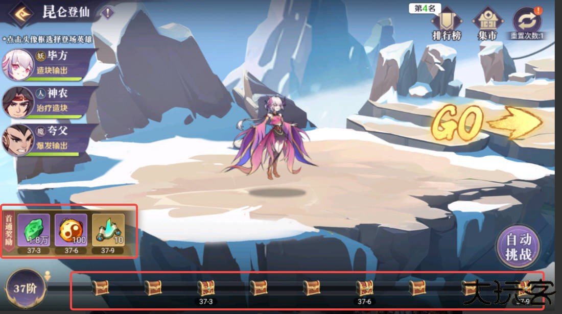 成功通过每一关的单挑挑战后,均能开启关卡宝箱获取奖励。凭借绝对战力优势快速通关并持续获取资源的体验非常出色。首次战胜每一境界的第 3 关、第 6 关及第 9 关的守护者后,可领取相应的首次通关奖励。每日玩法重置后,系统将依据玩家当前所处的境界等级再次发放对应阶位的奖励,境界等级越高,所能获得的奖励价值也随之提升。