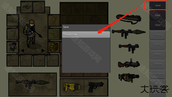 4、diy角色完成后,我们滑动之最上方“save”点击其中的“create new”可快速保存当前设置