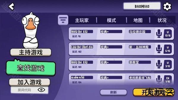 3、可以选择主持游戏,创建房间,让其他好友加入你的房间,也可以选择查找游戏,选择一个游戏加入