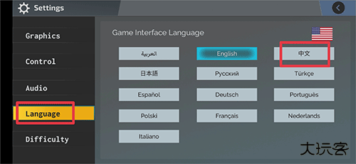 1、启动游戏后,立马点开设置,选择 language 选项,轻松切换成中文就行。