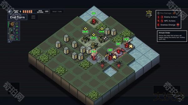 像下棋一样,“举棋未定”,通过观察攻击及其结果是很有帮助的。可以多次使用撤销按钮来移动你的机甲,但是一旦你发起攻击,就不能回头了。只有当制定出最具潜在伤害的行动并使受到威胁的建筑得到有效保护后,才开始攻击。