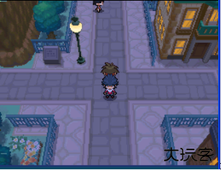 6、进入 20 号道路,会遇到训练师主动发起对战。沿路向上前进(右侧道路被一位男性角色阻挡,无法通行)。