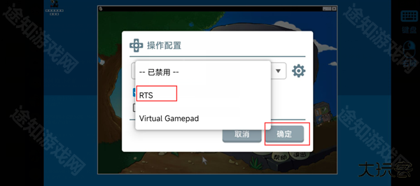 选择“RTS”,并点击确定,即可打开虚拟按键