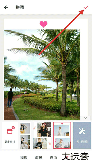 4、设置模板和排列方式之后,点击右上角的“√”这个符号,表示拼图完成。