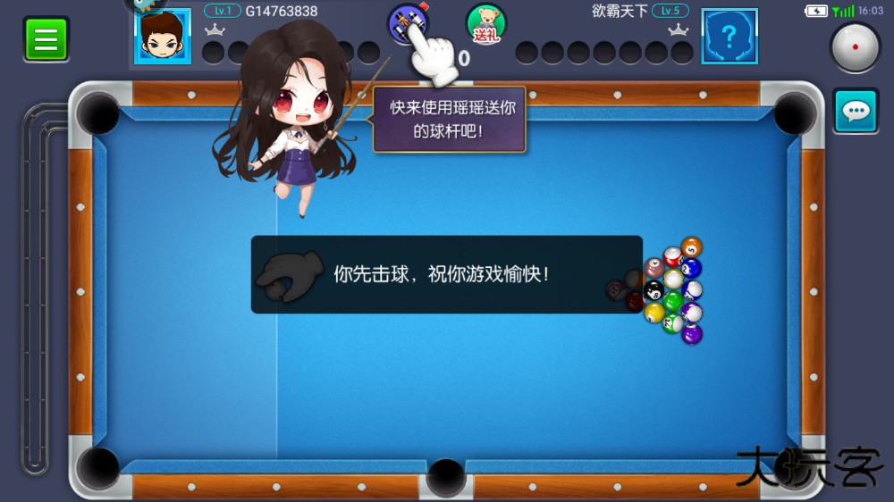 3、轻触屏幕选定目标球体操作标识,随即激活球杆控制单元以开启单局竞技流程;系统默认加载对抗模式,远端竞技单位同步进行策略性部署。