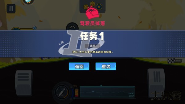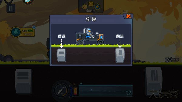 1、进入游戏,通过左右两侧按钮控制车辆前进后退/加速减速