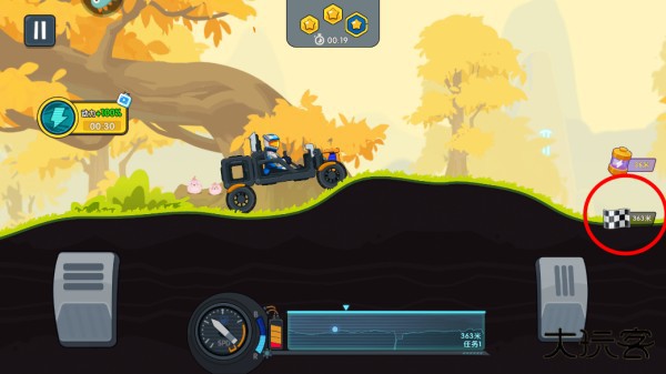 2、游戏右侧会出现一个数字与终点标志,意味着距离终点的路程
