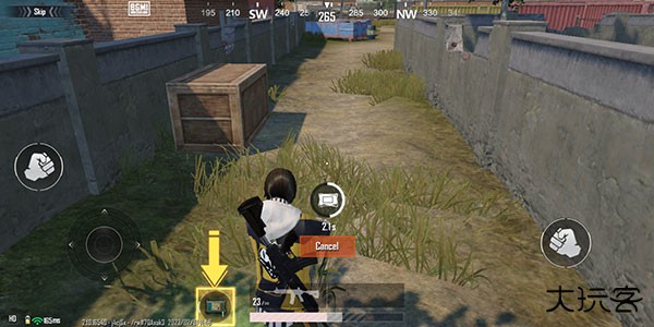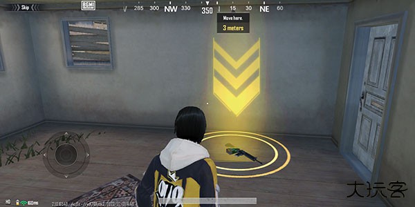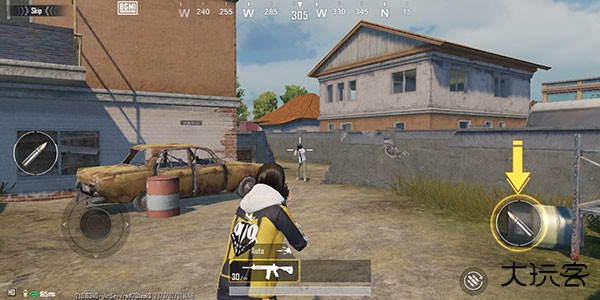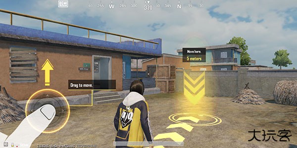 1.玩家跳伞落地之后,左边是控制角色移动。