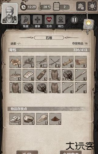 4、掠夺者营地很肥务必推掉,时间很充裕可以一天推一点。本关结关需要活18天,打完所有点之后每天就是找威利换石片,然后隔几天走一遍资源点。如果觉得食物压力大,请在推完营地后给二号人物断粮