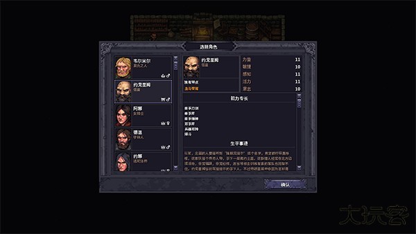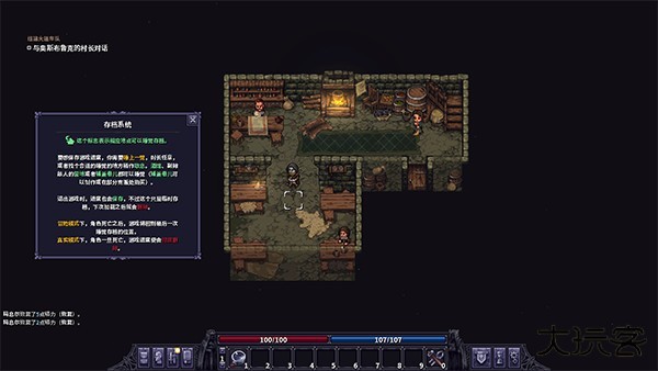 可以从他这购买到食物和酒等等。除此之外,玩家他可以付钱给他租房睡觉。睡觉除了能恢复伤势度过时间外,最主要的作用就是进行存档。