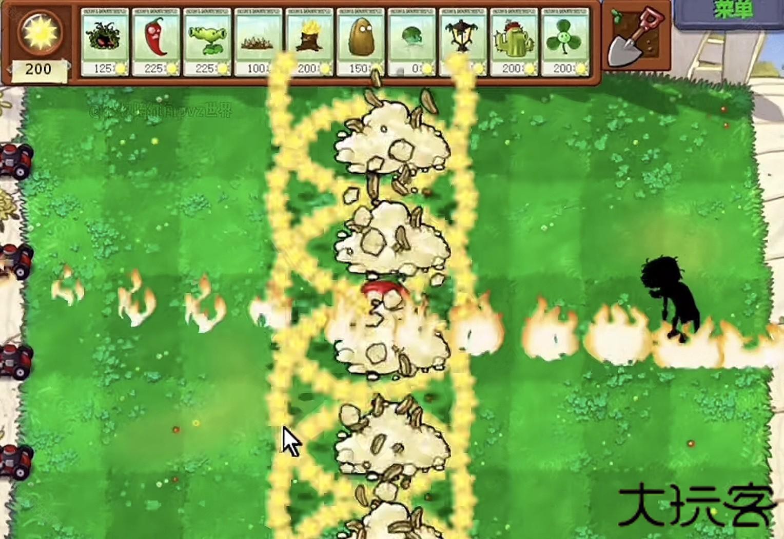 除了原本的火焰还会使该列产生土豆雷爆炸,同时伴随星星,片刻后会再次释放两排辣椒效果。